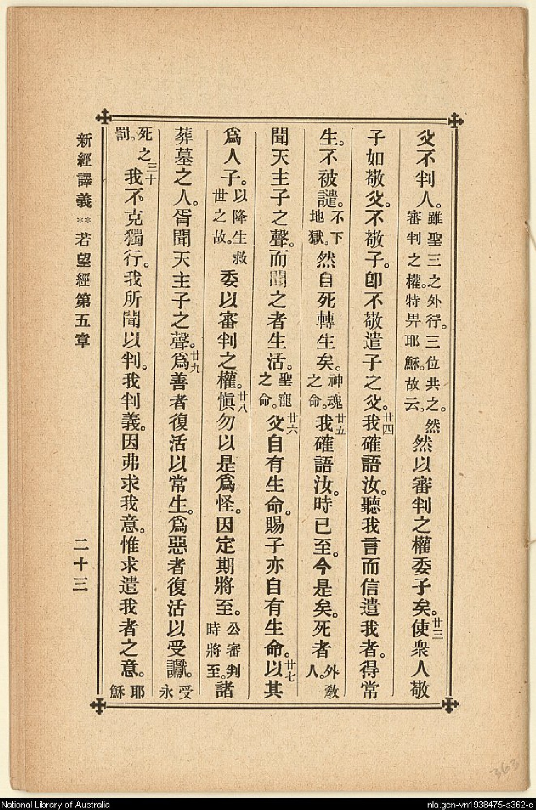 1907年新約四福音(新經譯義) 約翰福音 5 章 22 節到 5 章 30 節