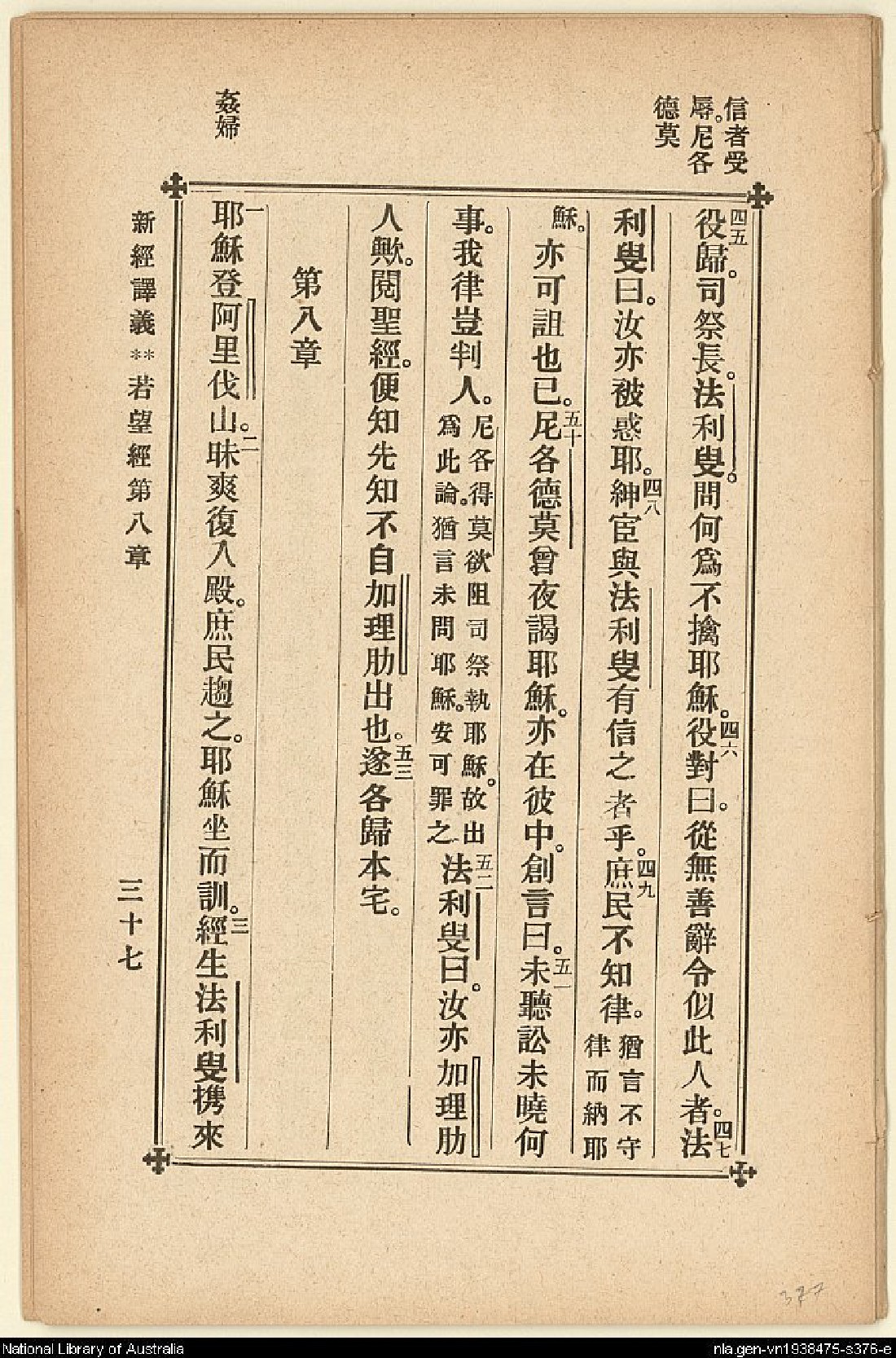 1907年新約四福音(新經譯義) 約翰福音 7 章 45 節到 8 章 3 節