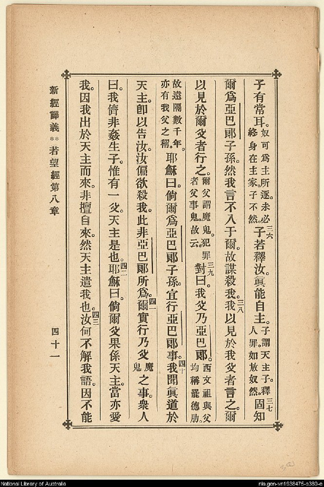 1907年新約四福音(新經譯義) 約翰福音 8 章 35 節到 8 章 43 節