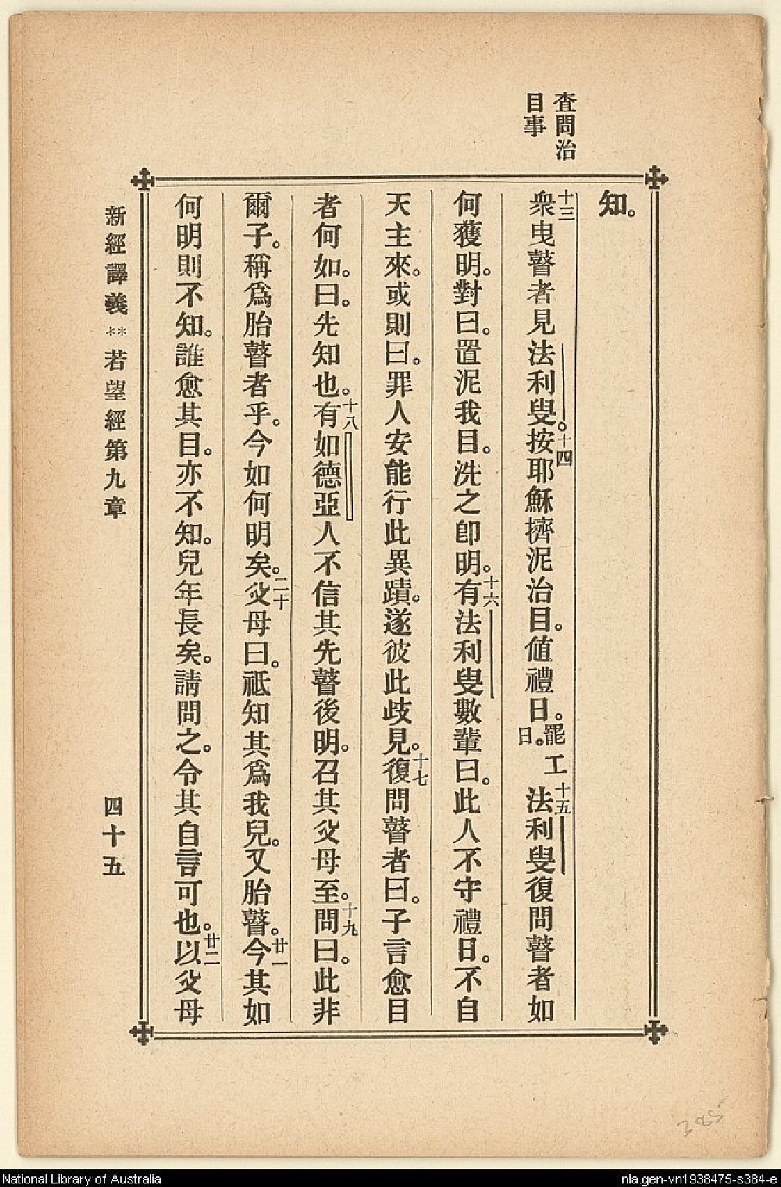 1907年新約四福音(新經譯義) 約翰福音 9 章 12 節到 9 章 22 節