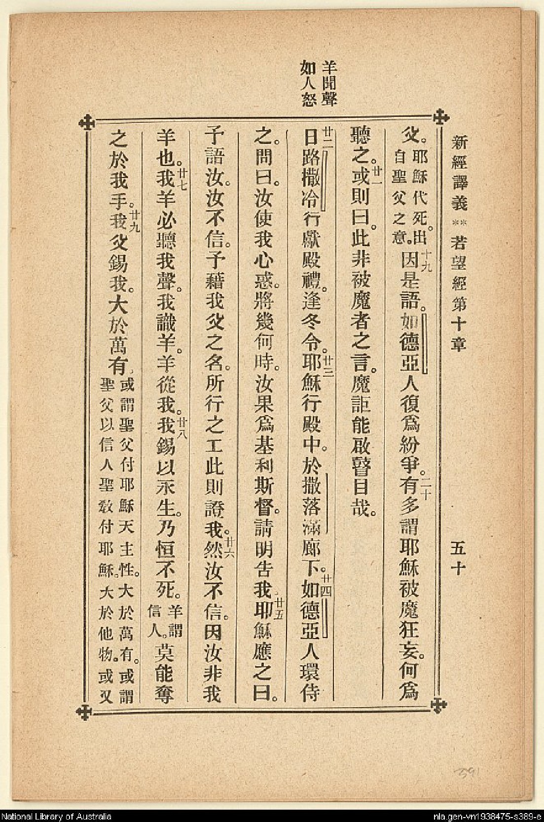 1907年新約四福音(新經譯義) 約翰福音 10 章 18 節到 10 章 29 節