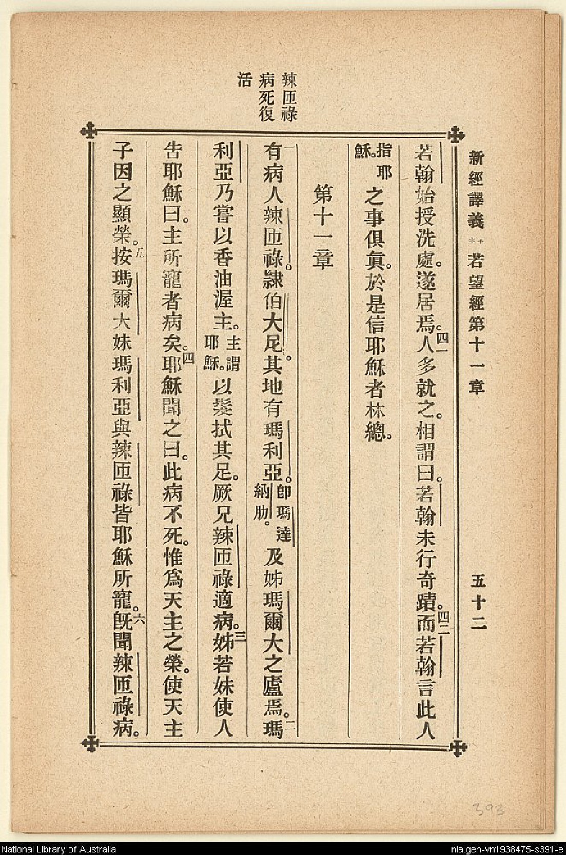 1907年新約四福音(新經譯義) 約翰福音 10 章 40 節到 11 章 6 節