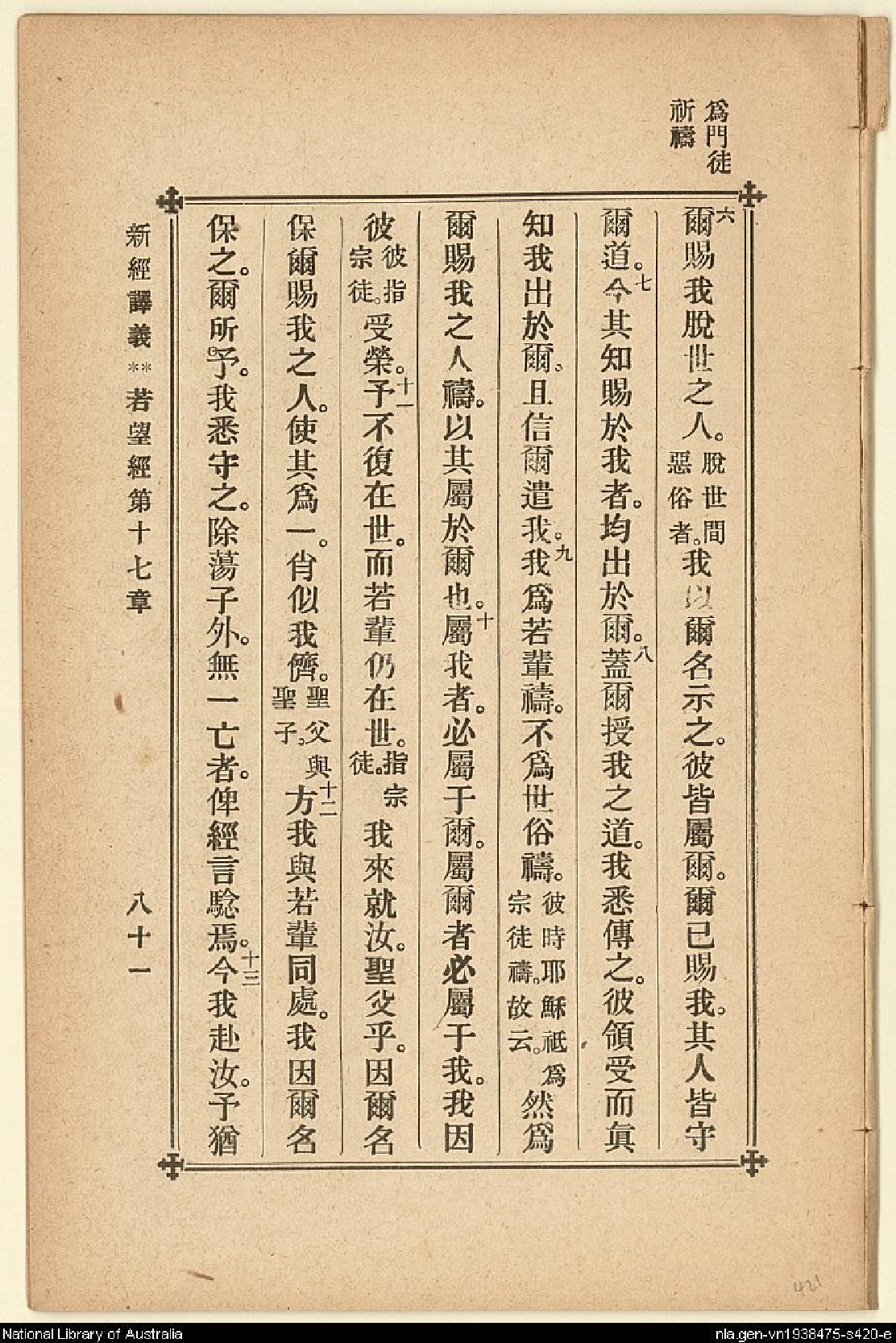 1907年新約四福音(新經譯義) 約翰福音 17 章 6 節到 17 章 13 節
