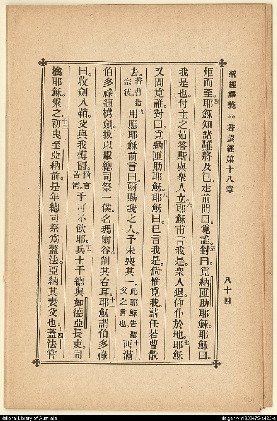1907年新約四福音(新經譯義) 約翰福音 18 章 3 節到 18 章 14 節