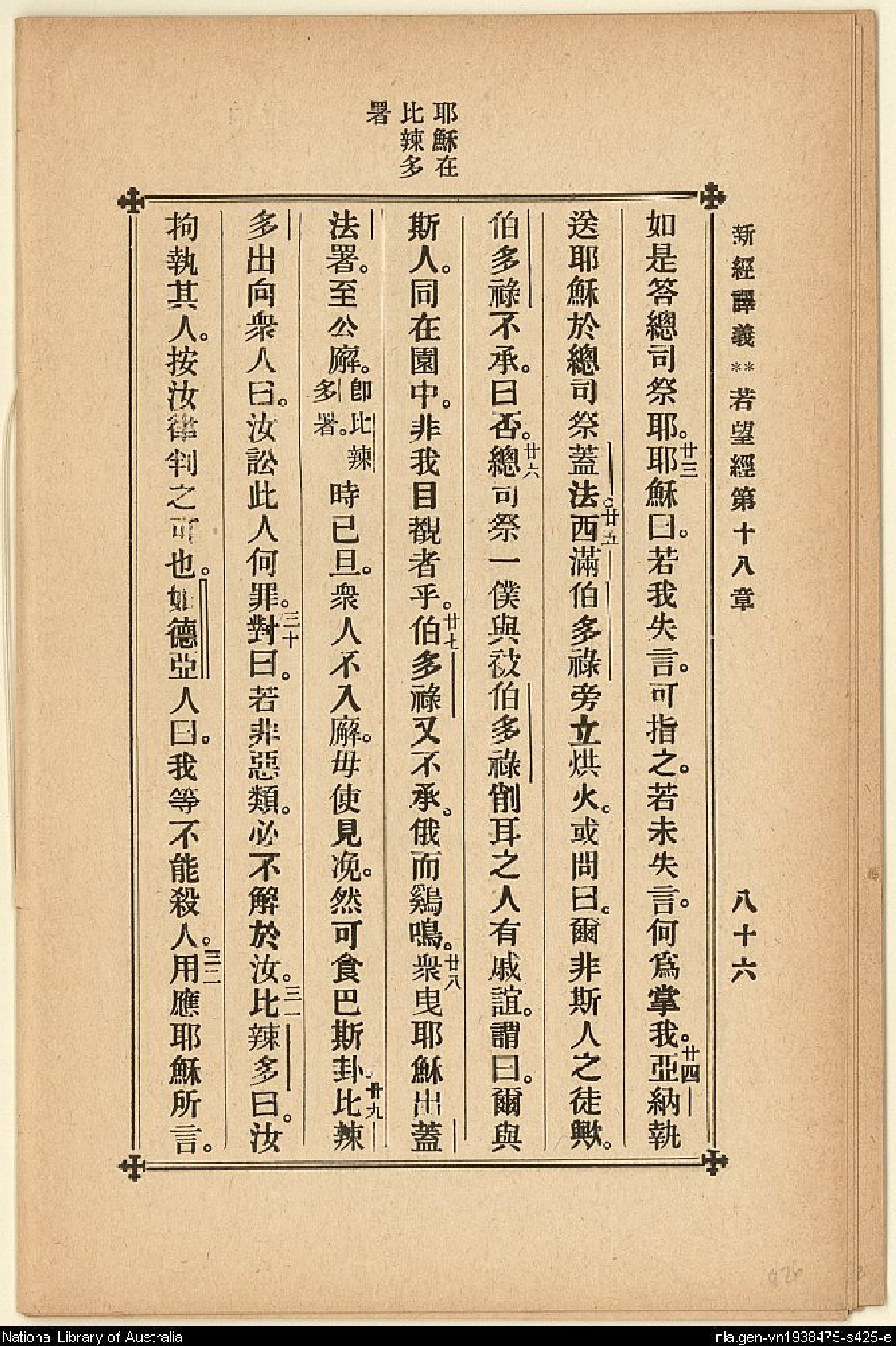 1907年新約四福音(新經譯義) 約翰福音 18 章 22 節到 18 章 32 節