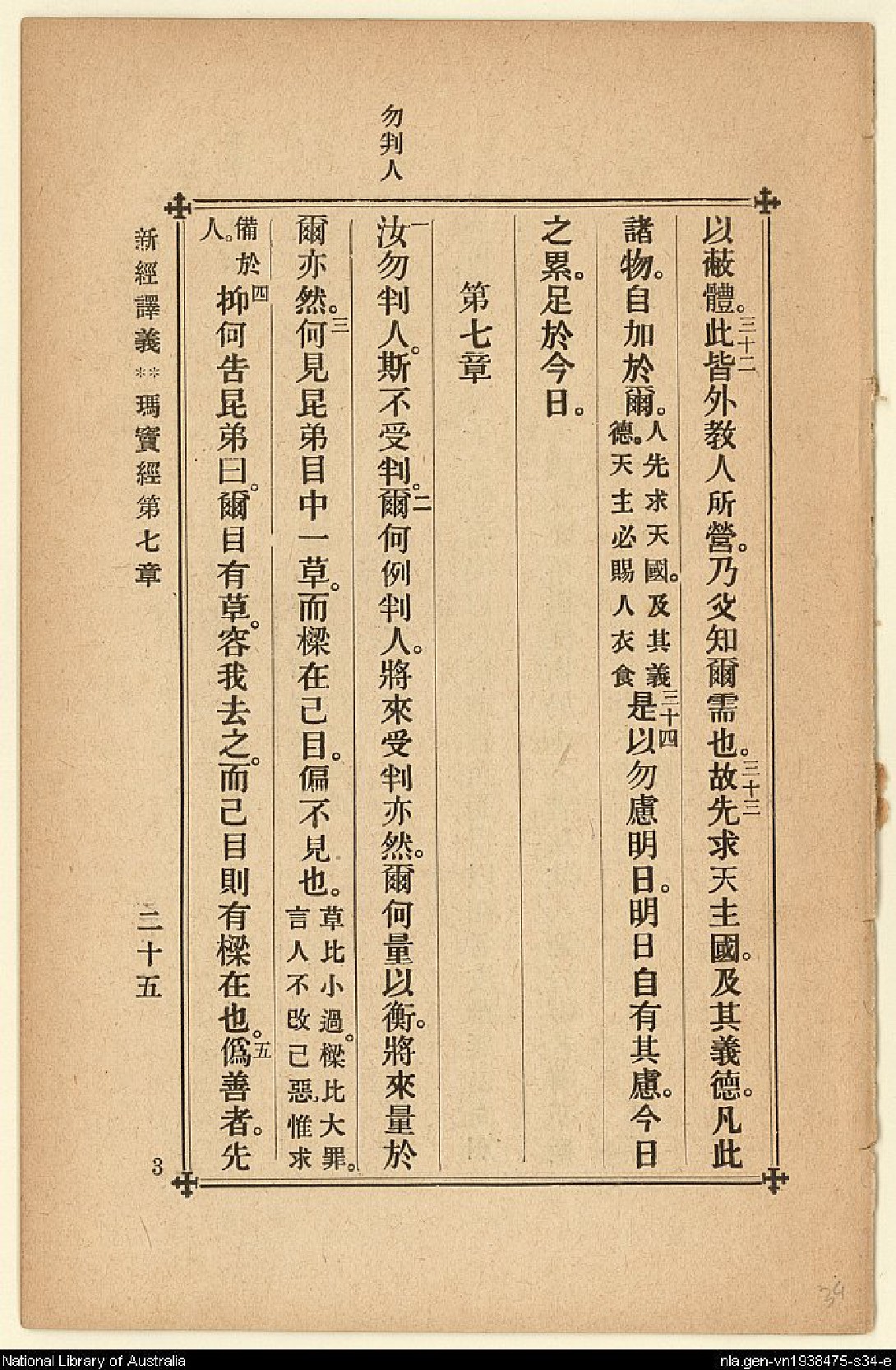 1907年新約四福音(新經譯義) 馬太福音 6 章 31 節到 7 章 5 節