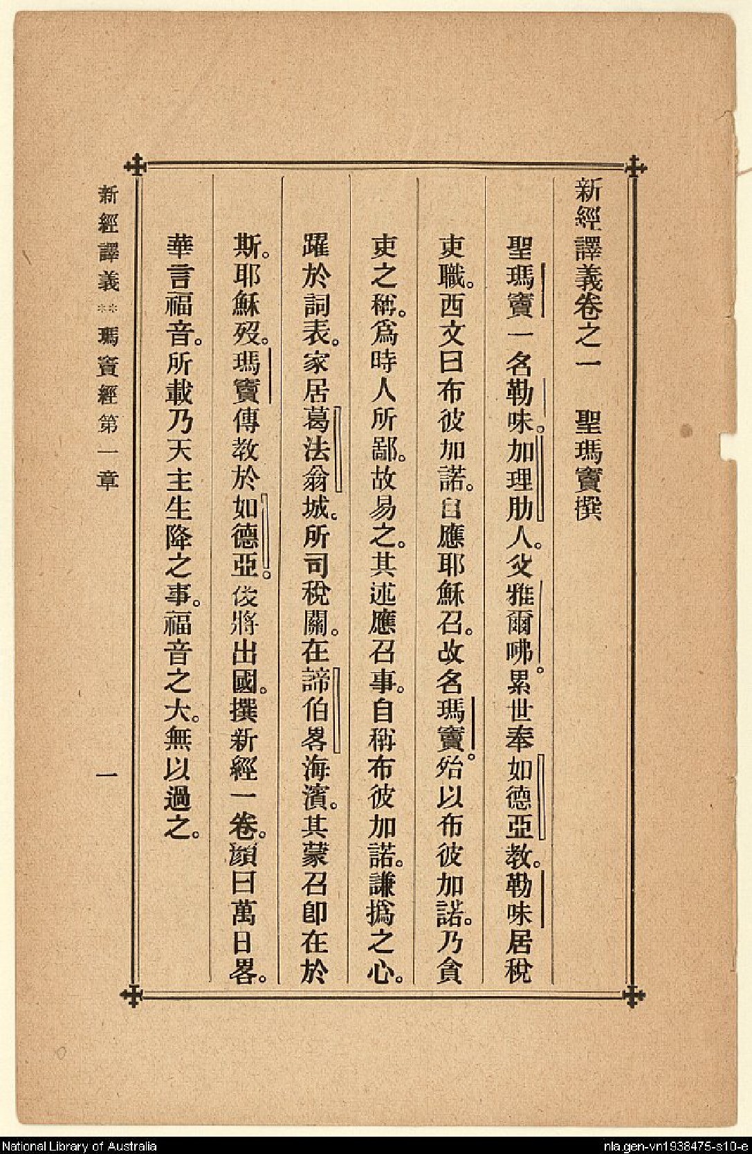 1907年新約四福音(新經譯義) 馬太福音 1 章 到 1 章
