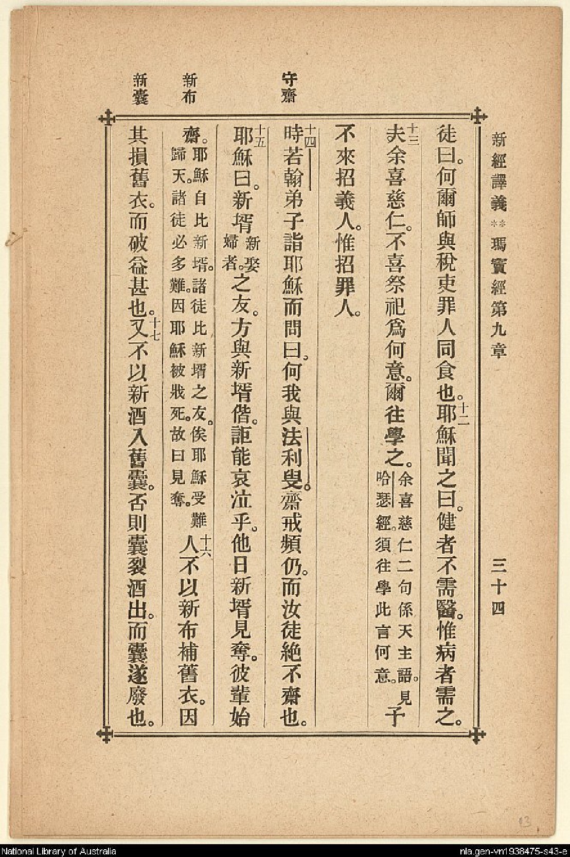 1907年新約四福音(新經譯義) 馬太福音 9 章 12 節到 9 章 17 節