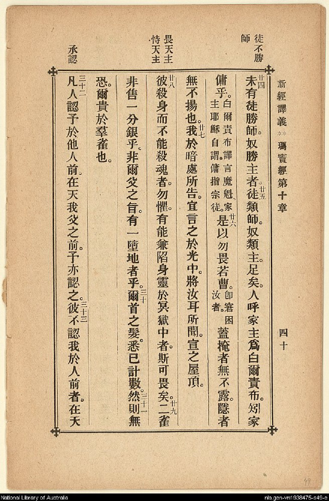 1907年新約四福音(新經譯義) 馬太福音 10 章 24 節到 10 章 33 節