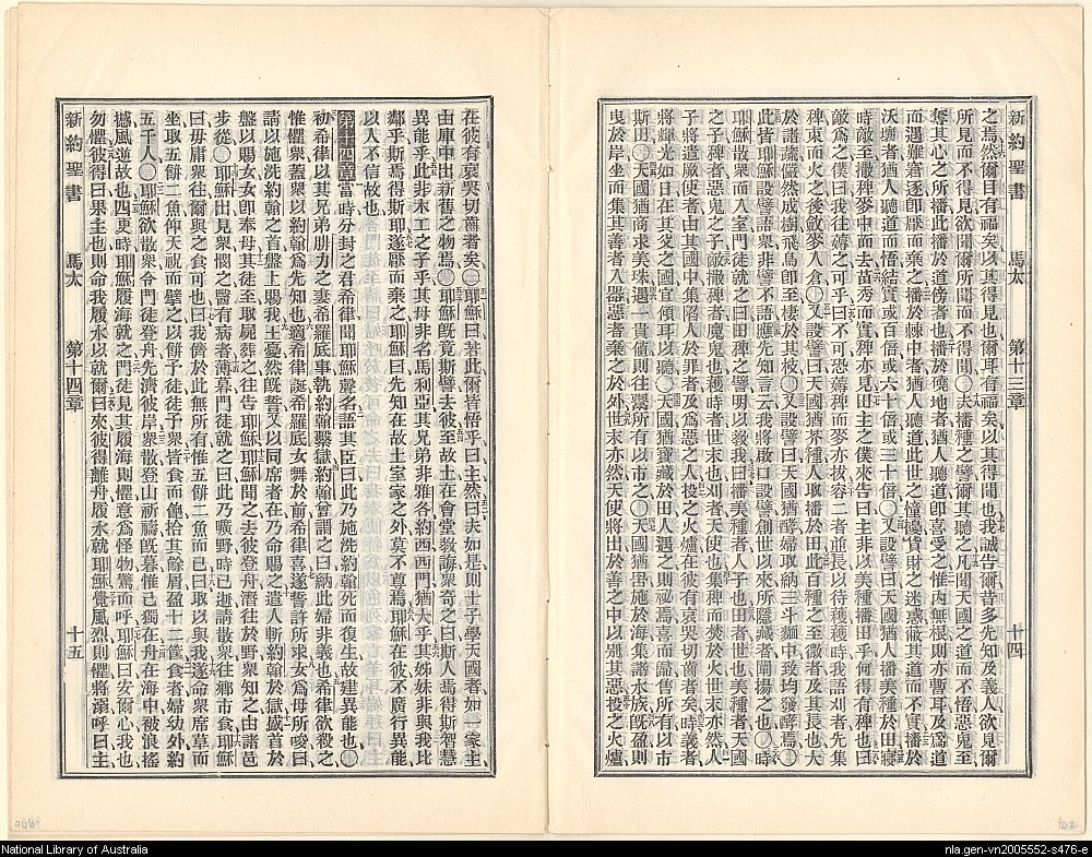 1908年新舊約全書(委辦譯本) 馬太福音 13 章 16 節到 14 章 30 節