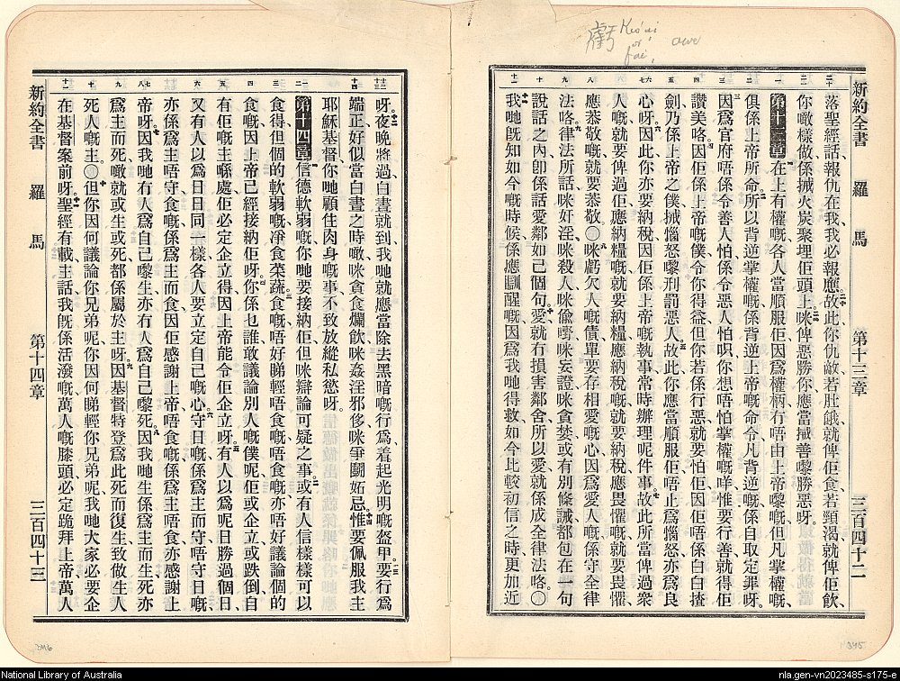 1906年新約全書 羅馬書 12 章 20 節到 14 章 11 節