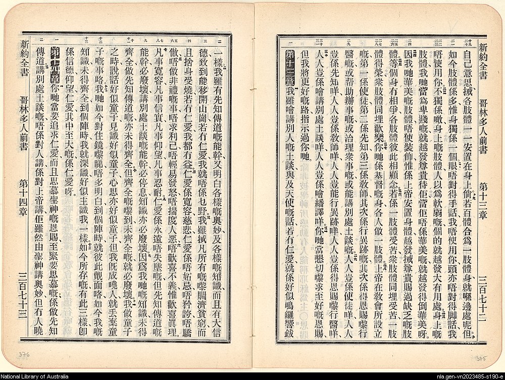 1906年新約全書 哥林多前書 12 章 19 節到 14 章 2 節