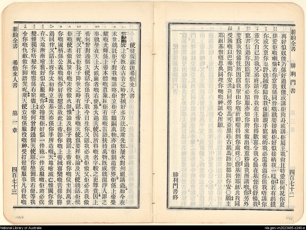 1906年新約全書 希伯來書 1 章 1 節到 1 章 14 節