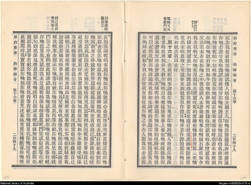 1927年新約全書 約翰福音 15 章 21 節到 16 章 20 節