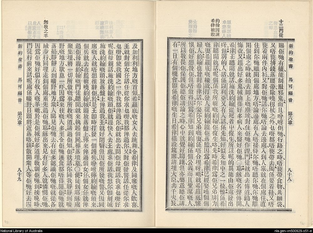 1927年新約全書 馬可福音 6 章 8 節到 6 章 36 節