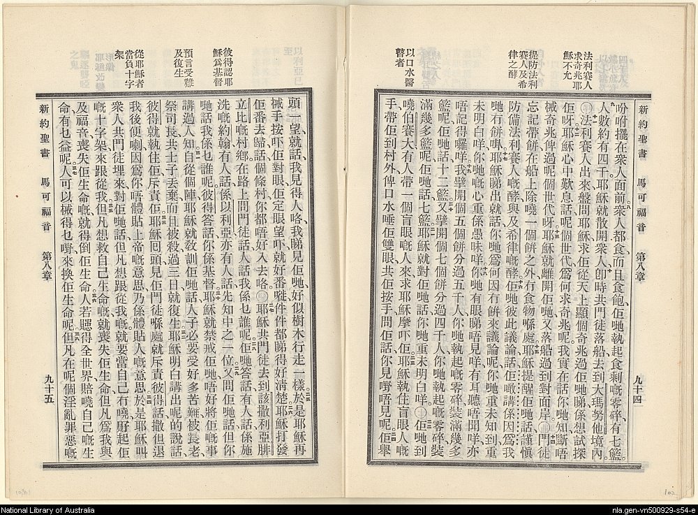 1927年新約全書 馬可福音 8 章 8 節到 8 章 38 節