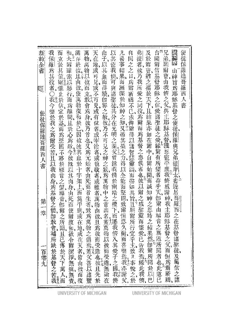 1869年新約全書 歌羅西書 1 章 1 節到 1 章 25 節