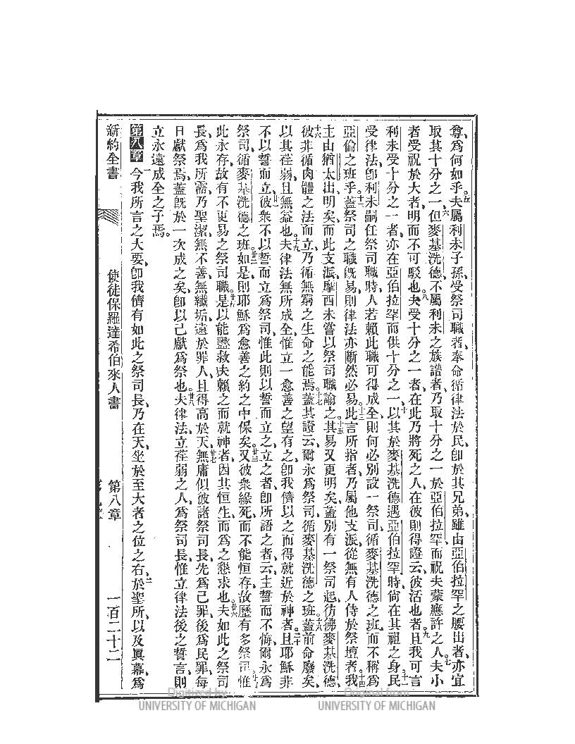 1869年新約全書 希伯來書 7 章 5 節到 8 章 2 節