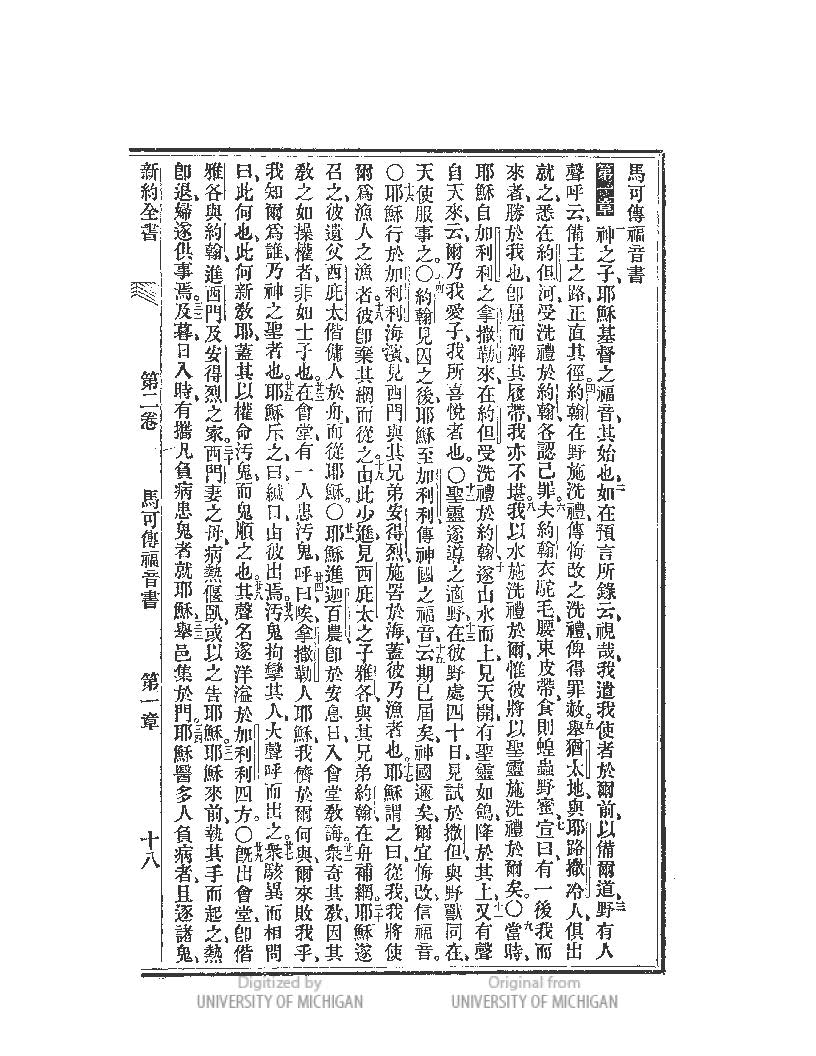 1869年新約全書 馬可福音 1 章 1 節到 1 章 34 節
