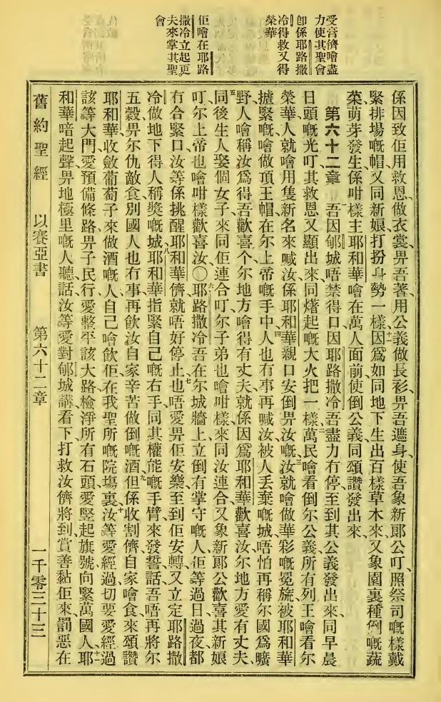 1923年新舊約全書 以賽亞書 61 章 10 節到 62 章 11 節