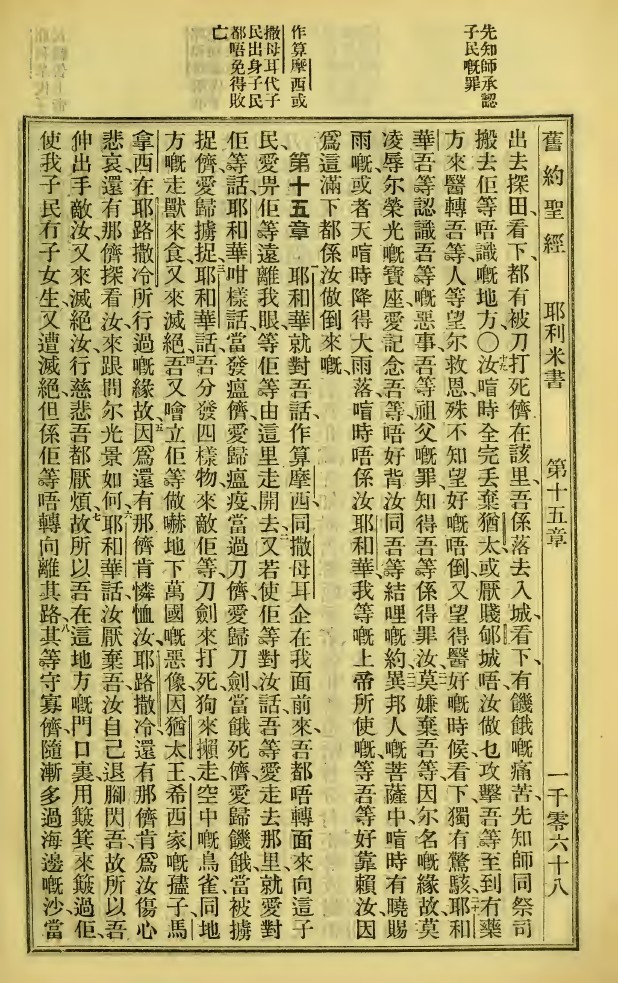 1923年新舊約全書 耶利米書 14 章 18 節到 15 章 8 節