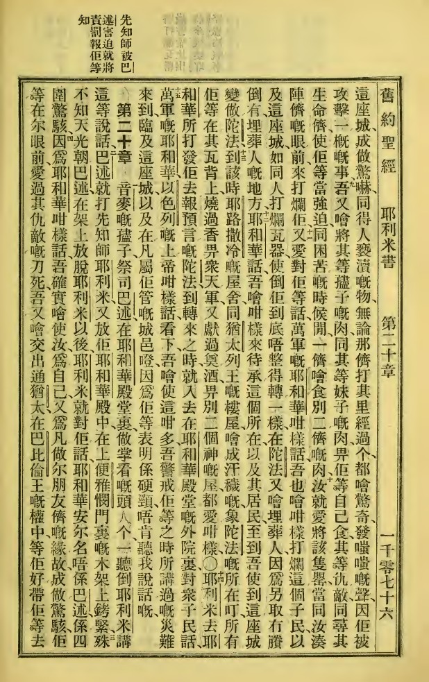 1923年新舊約全書 耶利米書 19 章 8 節到 20 章 4 節