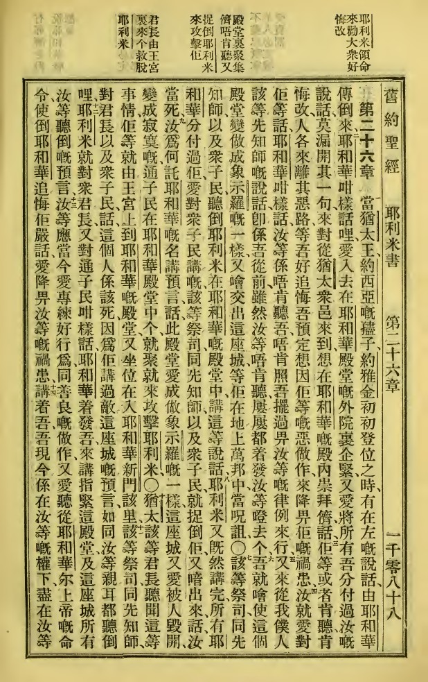 1923年新舊約全書 耶利米書 26 章 1 節到 26 章 14 節