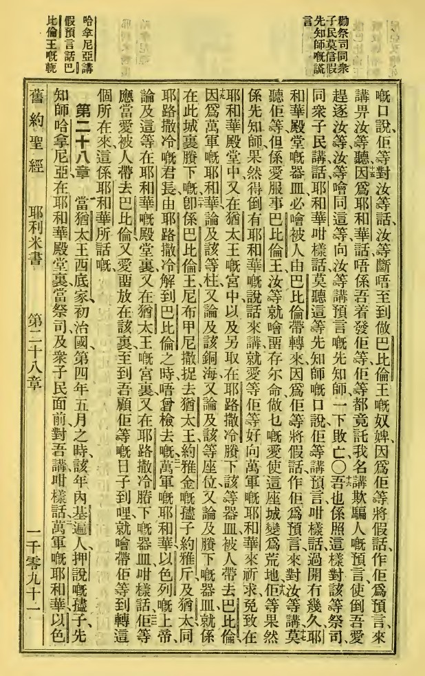 1923年新舊約全書 耶利米書 27 章 14 節到 28 章 2 節