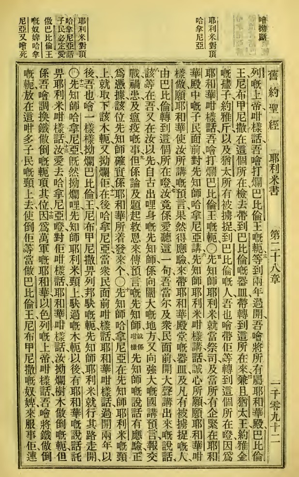 1923年新舊約全書 耶利米書 28 章 2 節到 28 章 14 節
