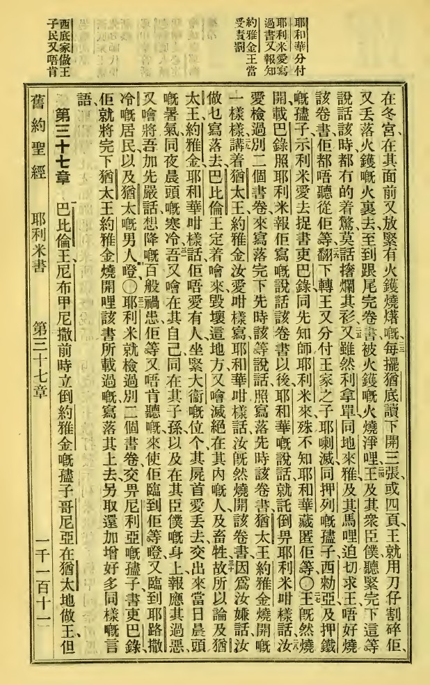1923年新舊約全書 耶利米書 36 章 22 節到 37 章 1 節