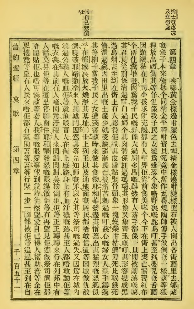 1923年新舊約全書 耶利米哀歌 4 章 1 節到 4 章 18 節