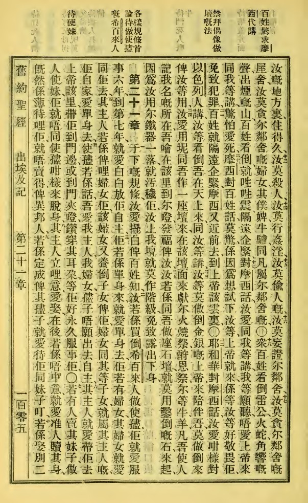 1923年新舊約全書 出埃及記 20 章 13 節到 21 章 10 節