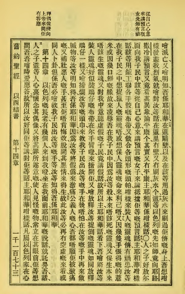 1923年新舊約全書 以西結書 13 章 14 節到 14 章 4 節