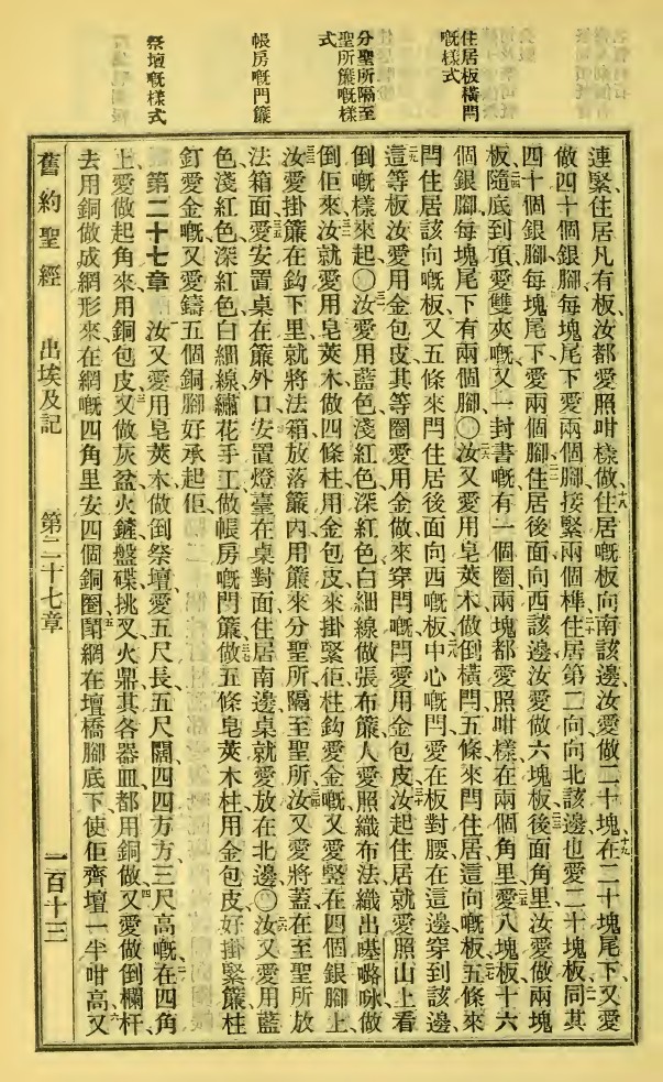 1923年新舊約全書 出埃及記 26 章 18 節到 27 章 6 節