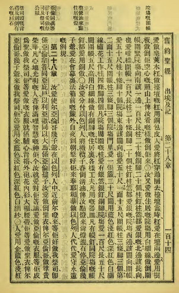 1923年新舊約全書 出埃及記 27 章 7 節到 28 章 6 節