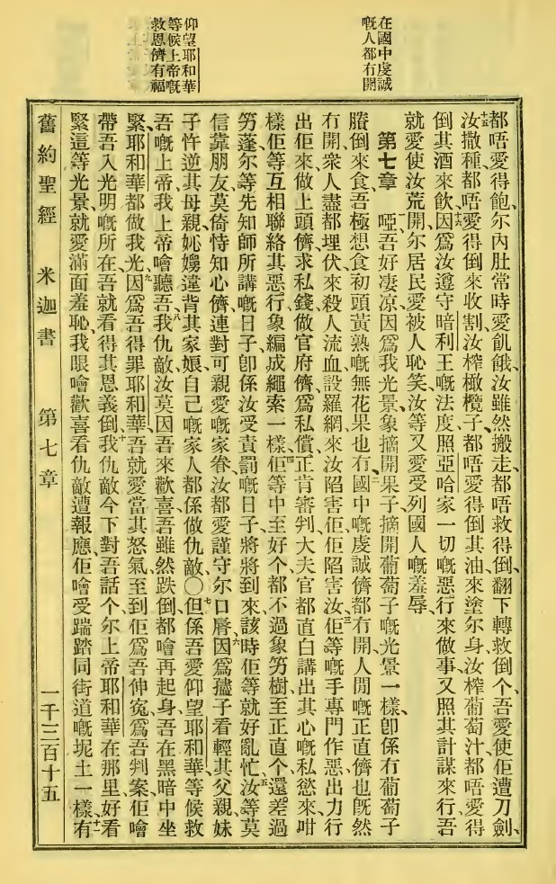1923年新舊約全書 彌迦書 6 章 14 節到 7 章 11 節