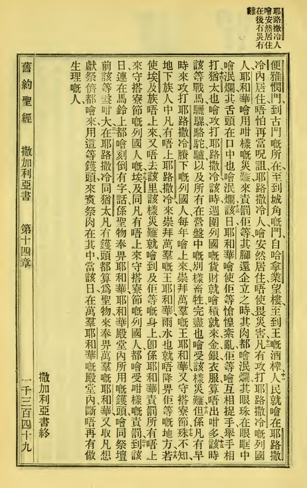 1923年新舊約全書 撒迦利亞書 14 章 10 節到 14 章 21 節