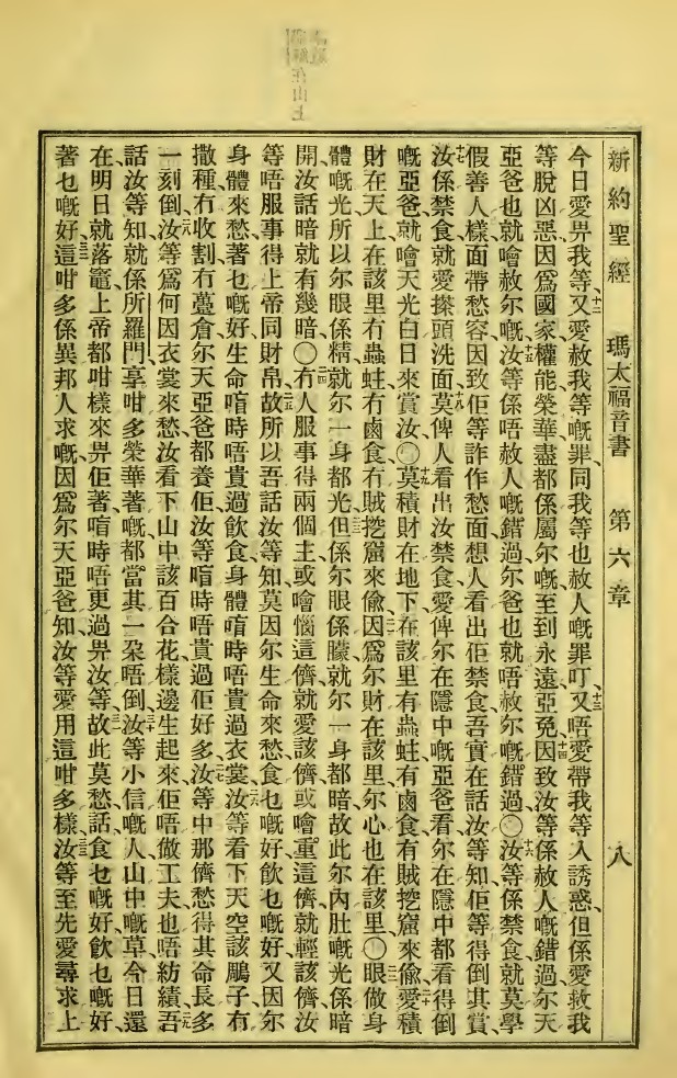 1923年新舊約全書 馬太福音 6 章 11 節到 6 章 33 節