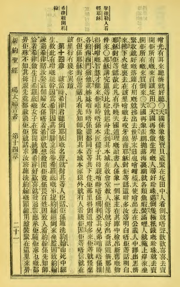 1923年新舊約全書 馬太福音 13 章 43 節到 14 章 8 節