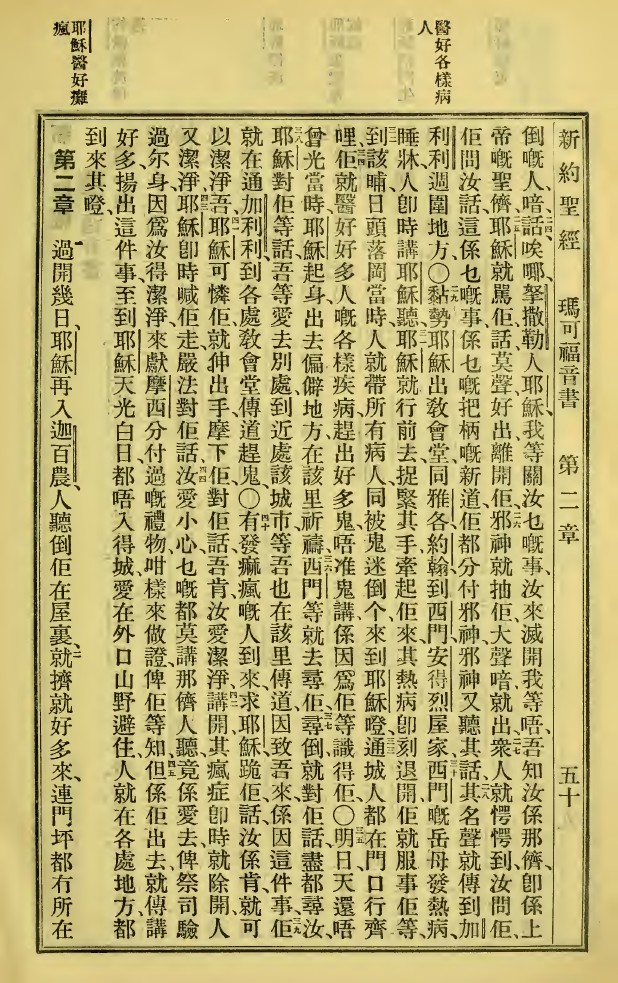 1923年新舊約全書 馬可福音 1 章 23 節到 2 章 2 節