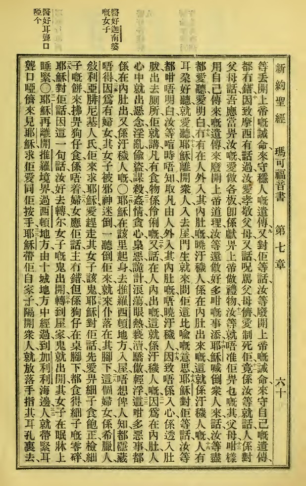 1923年新舊約全書 馬可福音 7 章 8 節到 7 章 33 節