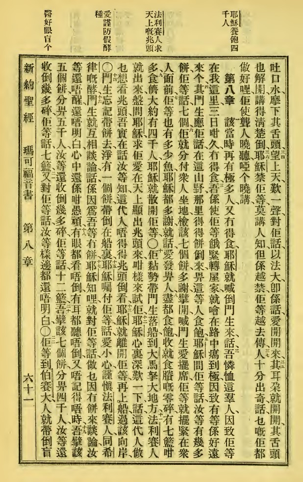 1923年新舊約全書 馬可福音 7 章 33 節到 8 章 22 節