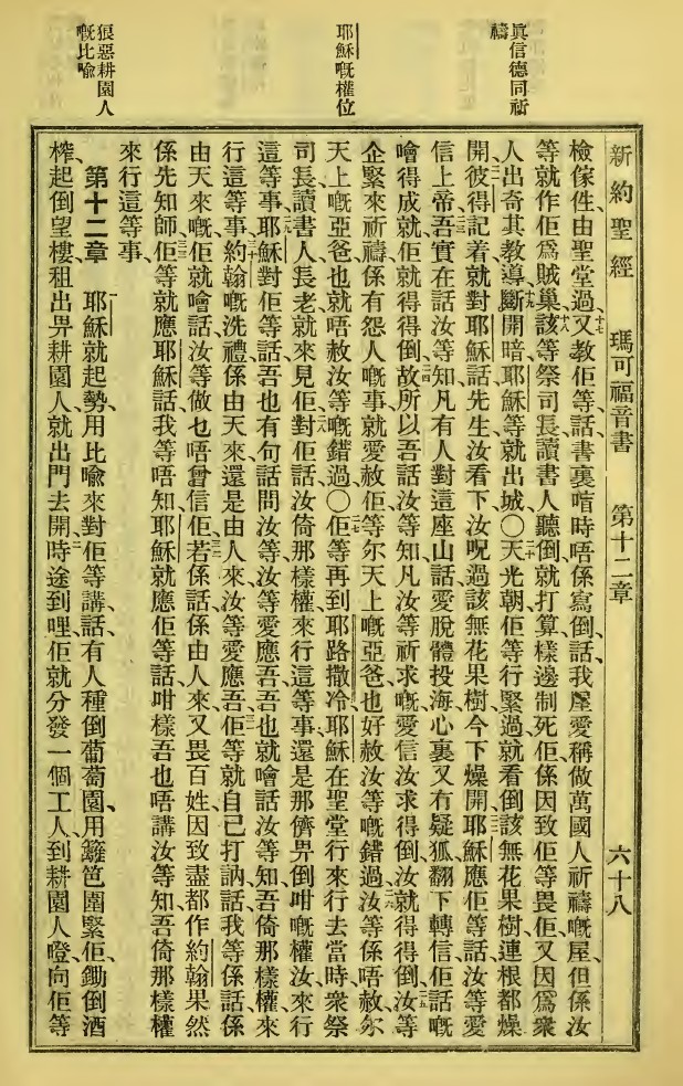 1923年新舊約全書 馬可福音 11 章 16 節到 12 章 2 節