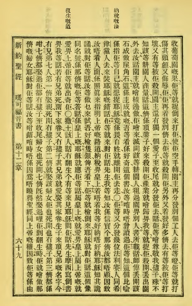 1923年新舊約全書 馬可福音 12 章 2 節到 12 章 25 節