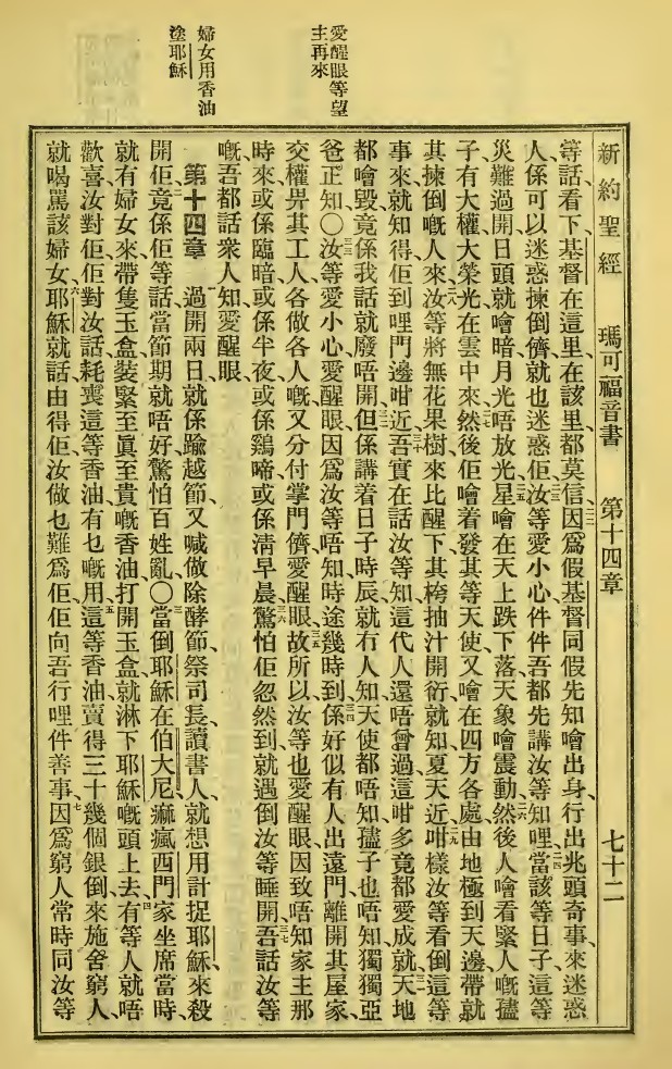 1923年新舊約全書 馬可福音 13 章 21 節到 14 章 7 節