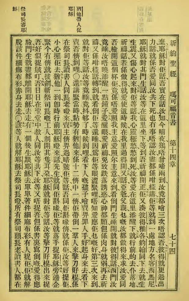 1923年新舊約全書 馬可福音 14 章 30 節到 14 章 53 節
