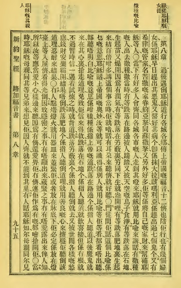1923年新舊約全書 路加福音 8 章 1 節到 8 章 20 節