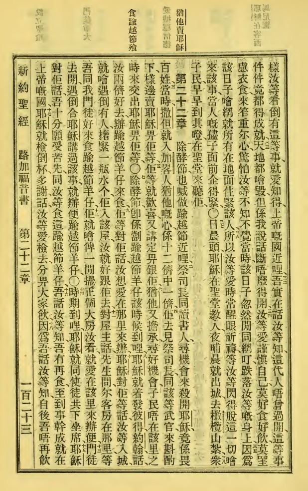 1923年新舊約全書 路加福音 21 章 31 節到 22 章 18 節
