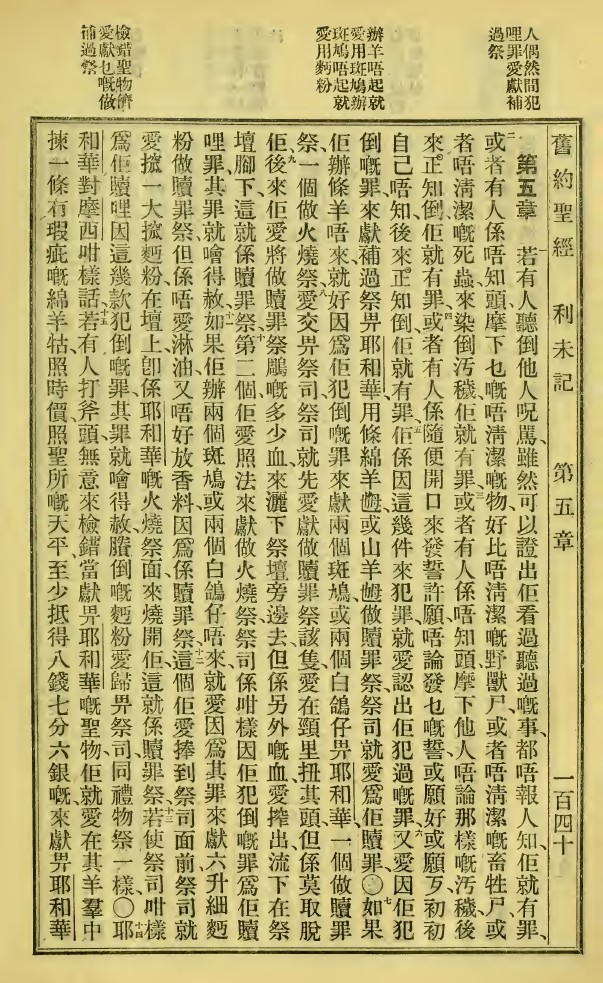1923年新舊約全書 利未記 5 章 1 節到 5 章 15 節