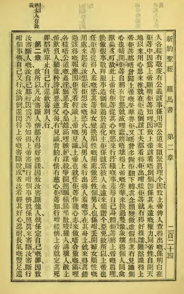 1923年新舊約全書 羅馬書 1 章 18 節到 2 章 4 節